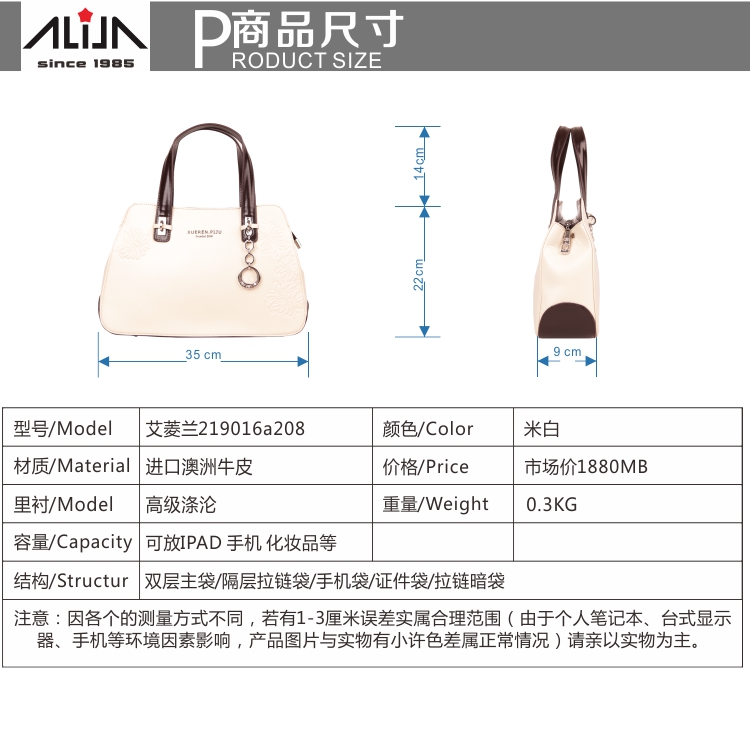箱包尺寸: 寬35*高22*側面寬9cm
